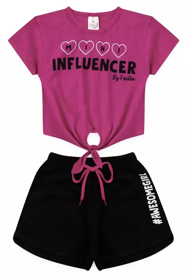 O Conjunto Cropped Infantil Verão Feminino Mini Influencer - Pink é ideal para meninas que querem estar na moda com estilo e conforto. Perfeito para brincar e explorar o verão com liberdade, garantindo um visual moderno e cheio de charme.