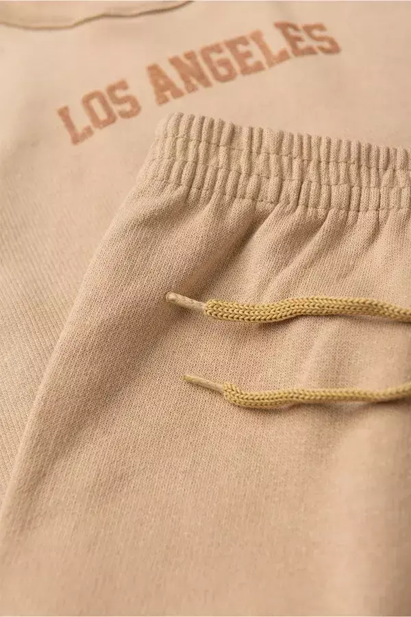 O Conjunto Cropped Juvenil Verão Feminino Los Angeles - Bege é ideal para meninas que buscam estilo, conforto e praticidade nos dias quentes.