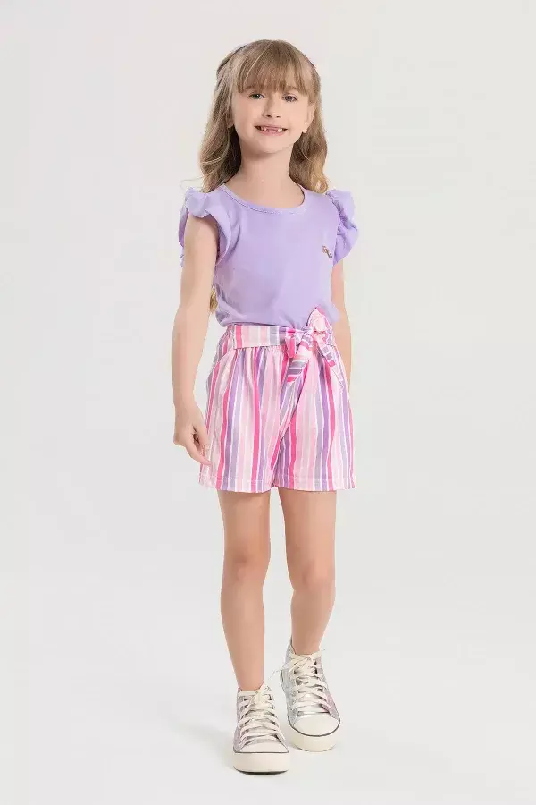 Ofereça à sua filha estilo, conforto e qualidade com o Conjunto Infantil Verão Feminino Plaquinha - Lilás e deixe-a pronta para arrasar neste verão!
