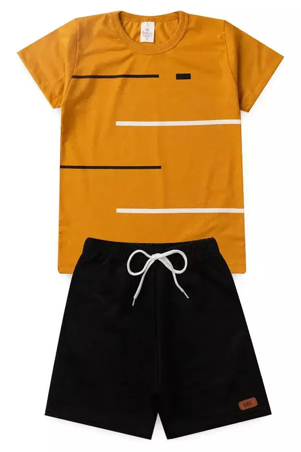 O Conjunto Infantil Verão Masculino Linhas - Mostarda é perfeito para meninos que buscam estilo vibrante e conforto nos dias mais quentes.